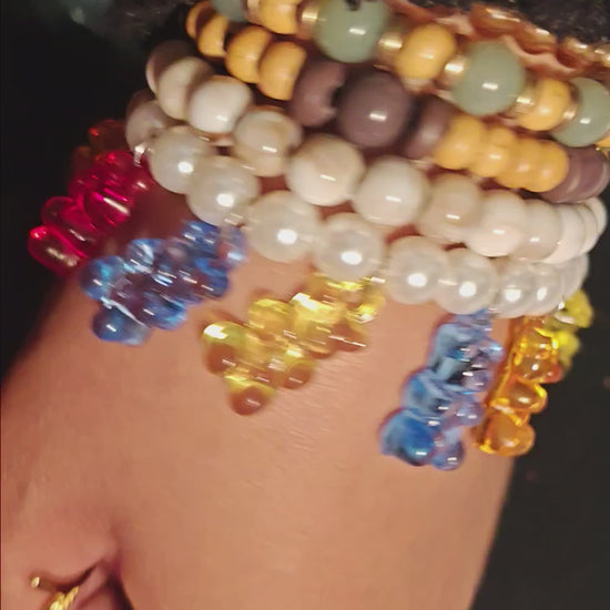 "Add a playful pop of color to your outfit with our Brooklyn Gummy Bear Pearl Bracelet. Vibrant and bold, this accessory will make a statement wherever you go. Who says gummy bears are just for kids? (Definitely not us!)"