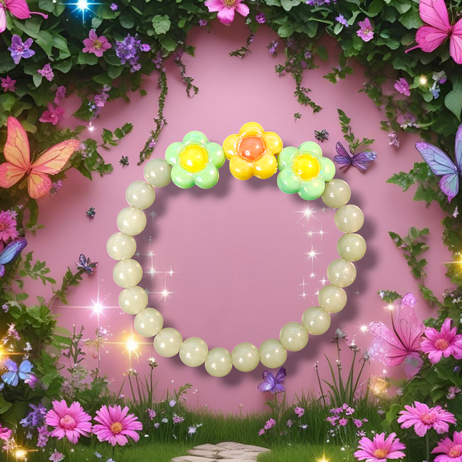 "Add a touch of love and quirk to your wrist with our Zariah Flower Bracelet. Handmade with care, it's a playful addition to any outfit. Spread some love with this unique piece. (Only 1 exclamation point, we promise!)"